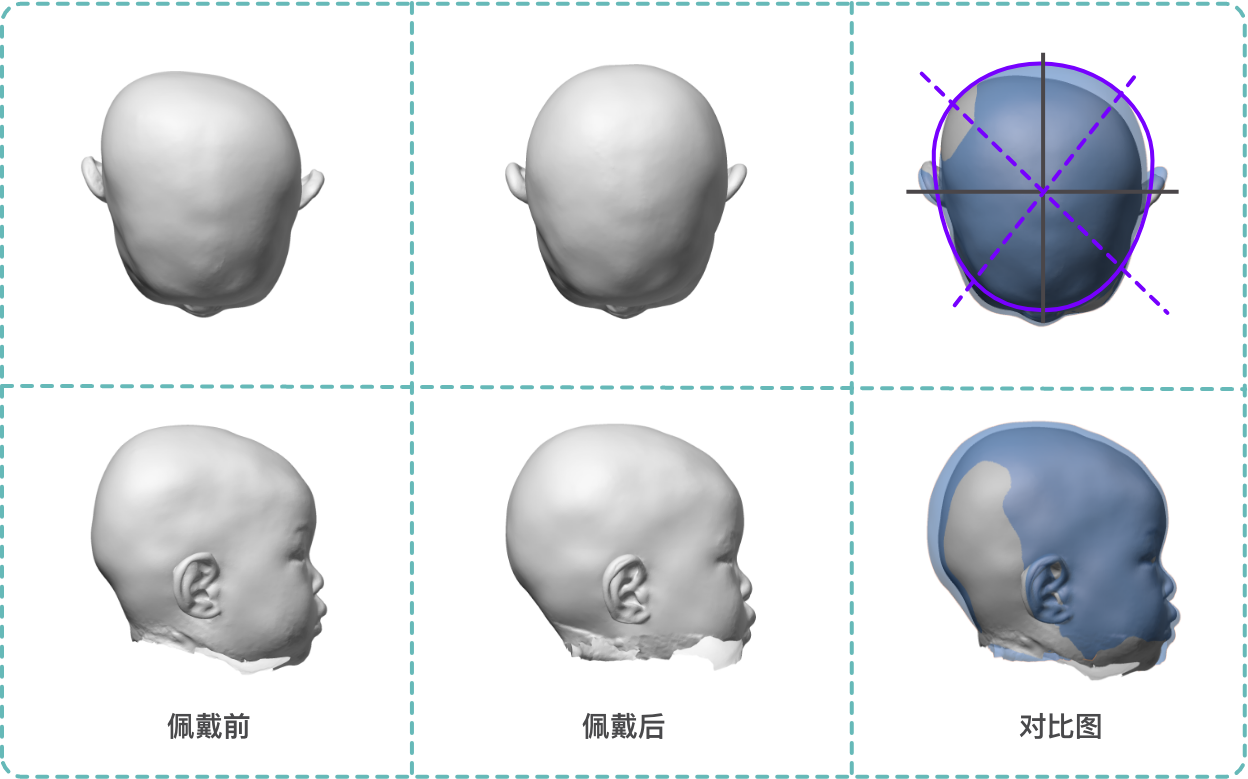 佩戴14周后枕骨回正,耳位回正,前额对称,颅型饱满圆润